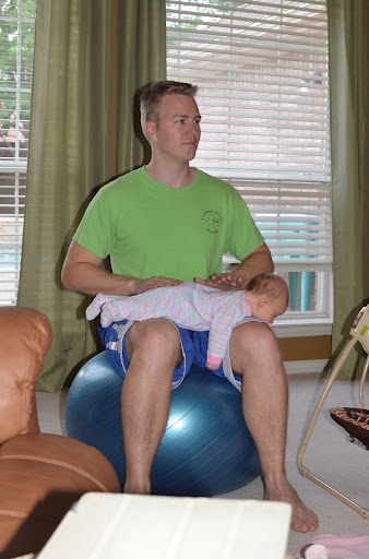 Summer and I watching the Summer Olympics [pe2-gallery class=”aligncenter” ] Bouncing on the ball. Either she liked this or was too confused to cry. Chilling on the couch [/pe2-gallery]